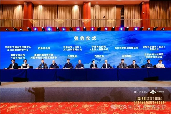 美国巴拿马太平洋万国博览会中国区组委会、大国茶道、大国应急、大国书院、北京央美文创雕塑设计院有限公司等十余家机构代表集体登台签约,达成多项文旅产业合作共识,涵盖资源共享、项目共建、品牌共创、华夏好品出海工程等多个领域,为行业协同发展注入新动能。